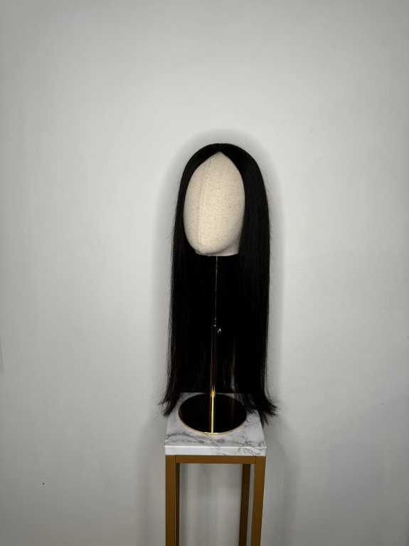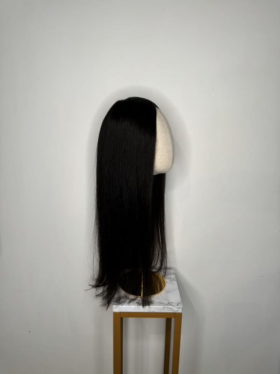 Toupet + une bande de cheveux de 55 cm totalite de 178 grammes de cheveux, couleur chatain naturelle.